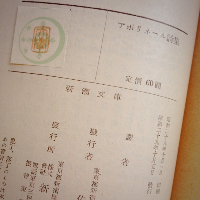 詩は自分で書くような気は一切しないんだけど読むのに徹してのみ好きなんだ、というか明治文学の頃のガチガチの詩が好きでね…八十とか晩翠とか…いいよね…このアポリネールのも訳が凝ってて本当にすごく良いです。じっくり読むー!