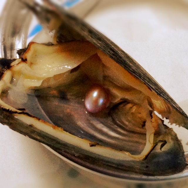 貝のまま売り出すってすごいキャンブルだよね、ピンク色っぽい真珠が入ってました!綺麗!