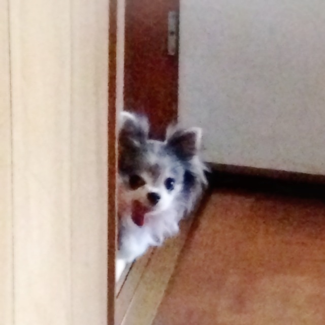 なんか視線を感じる…と思ったら部屋からチラ見していたうちの犬でも。