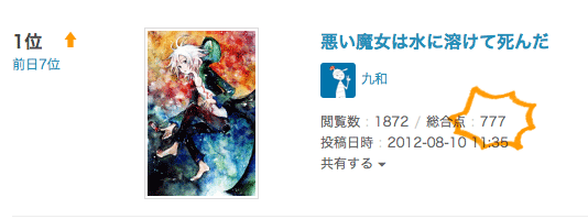 8/10付デイリーが397位で、ルーキー総合が7位だったそうなんですが、…ラッキーセブン!?ラッキーセブンじゃないですか!幸運さんマジパネエっす!!!