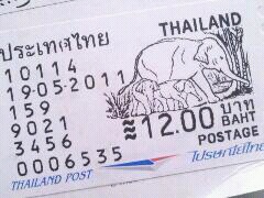タイから(自宅宛に)送ったエアメール、切手が象さんだあああああかわいいいい象さん!象さんって!お茶目!!!