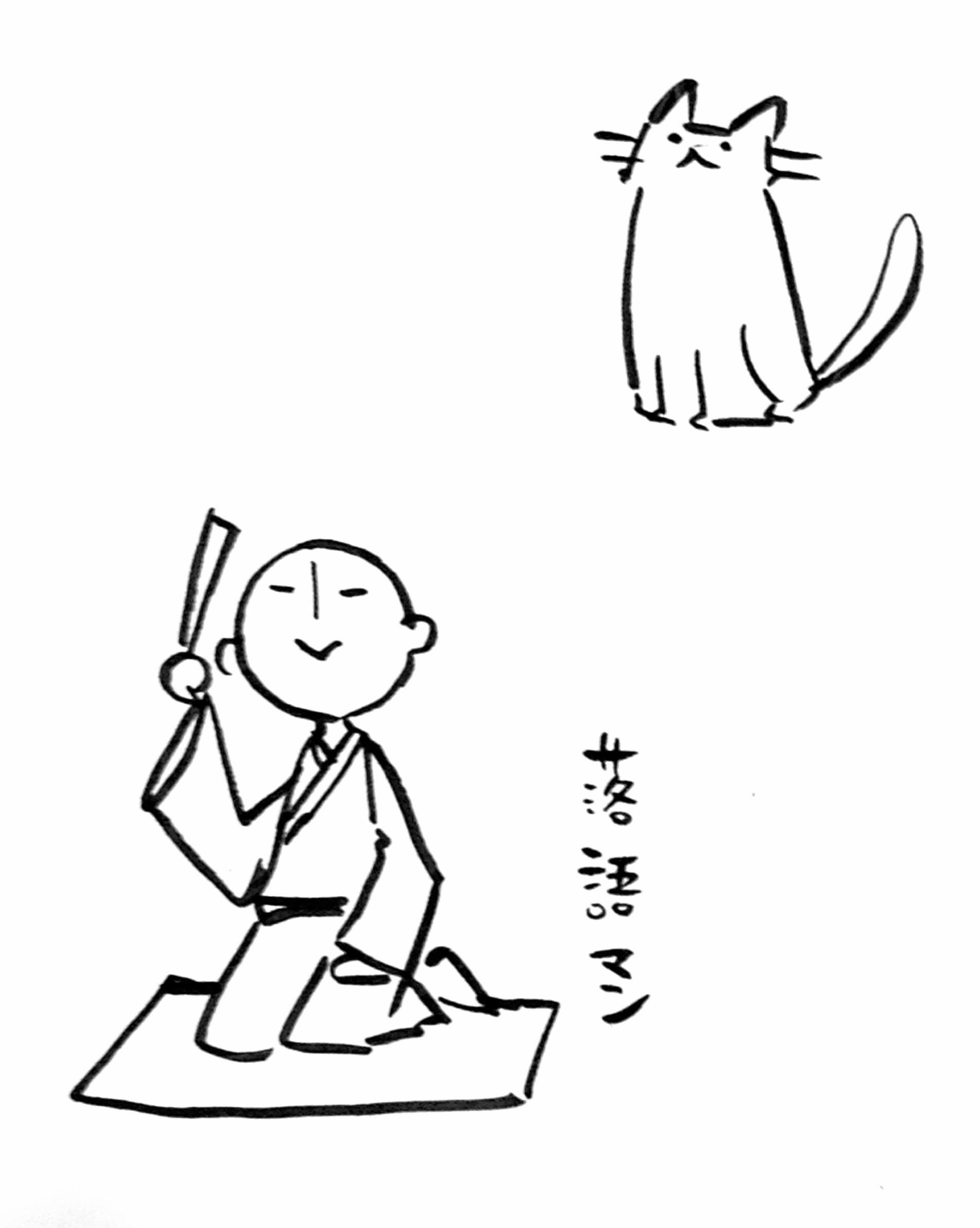 職場で30秒くらいで描いた落語マン と猫