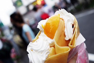 早速クレーーーープッ!アンドレアさんっつうその筋では有名なお店で 何がって量が 私の後ろにいたカップルズが「ここのはボリューム半端ないからふたりでひとつにしよう」と言い出すもんだからどうしようかと思った独り身 おいしかったよー