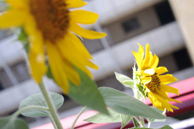 ヒマワリ元気に双子が咲いてます 一昨年のマザーオンリーでもらった種のアレですげんきげんき!今年はなぜだかアブラムシにも悩まされない \動機はありまき/