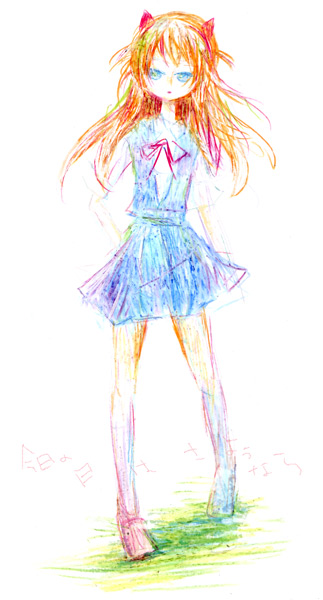 あと油性色鉛筆(ポリクロモス様ではなくユニの24色)を貰い受けたのでテステス↑やわらかーい!暖色系が綺麗なので必然的にアスカになります セットだから仕方ないとはいえ何故に青系が2色だけ…なのか…よくみんなこれ混色できるネー油性かなり奥深い