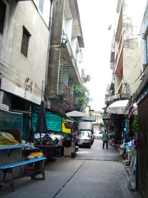 奥が市場の通り。道とか路地がすごく入り組んでいる