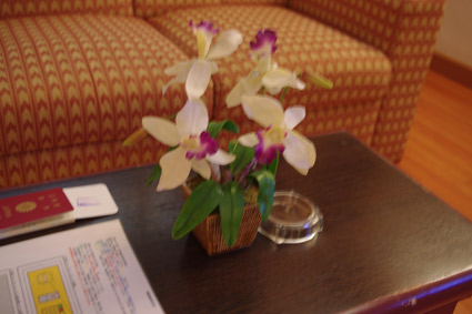 とりあえずこの日は寝るのみ。角部屋でダブルベットなので思いのほか広くて快適たぶん私の部屋の2.5倍くらいある 生の胡蝶蘭が飾ってあるよー