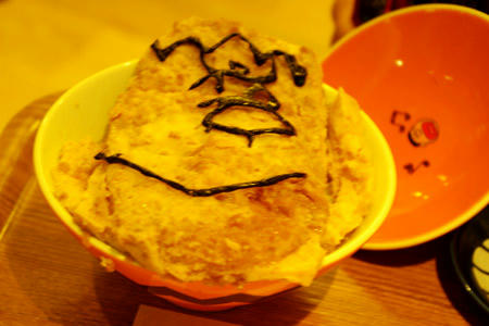 ジャイアンカツ丼。海苔巧妙すぎんだろう… あとこれを↑の次に頼んだときに店員さんが「オオッ、ジャイアンセットですねえー!!」って反応してくれて物凄く楽しかった
