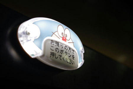 つり革や座席がドラえもん仕様になっててかわいい。座った席はラーメン小池さんだった
