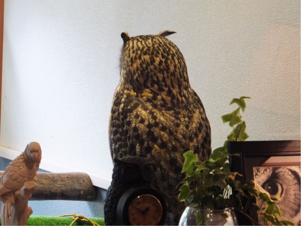 写真はこないだの猛禽類カフェの哀愁のある背中でも。
