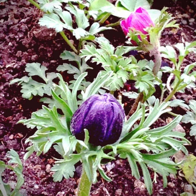去年の秋先に植えたアネモネの、花第一号が!出てきました!!!