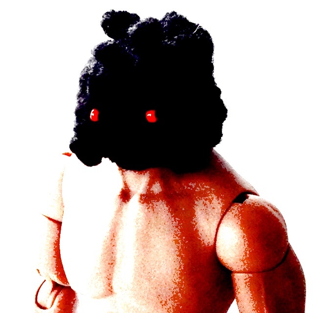 描いてる絵が一向に仕上がらないので、数年前にレトロインクさんとこの通販で買った黒い生き物の巾着が、なんとなくいいサイズだったのでうちのマッチョ君にかぶせてみた画像でもお送りいたします。